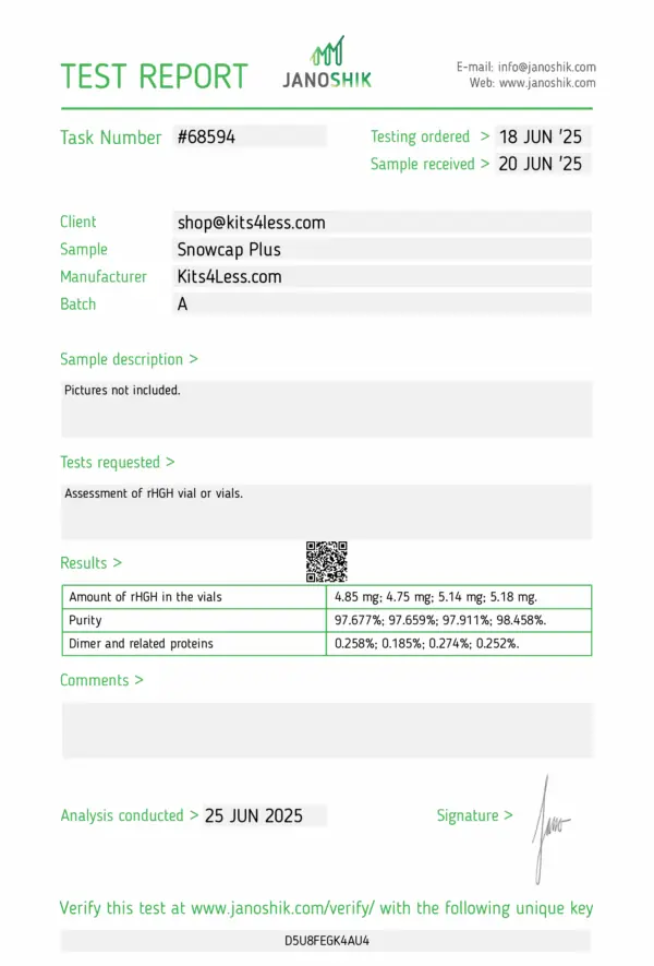 Meet Snowcap — the high-output evolution of our Standard HGH line. With approximately 12–14 IU per vial, Snowcap delivers a higher total yield of 120–140 IU per kit, offering greater flexibilitylonger-lasting protocols, and enhanced value for those running moderate to advanced daily growth hormone regimens.