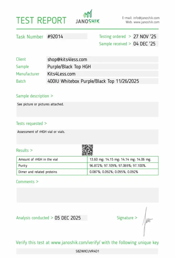 Limited Run of ~420 IU HGH. Purple/Black tops in white boxes.