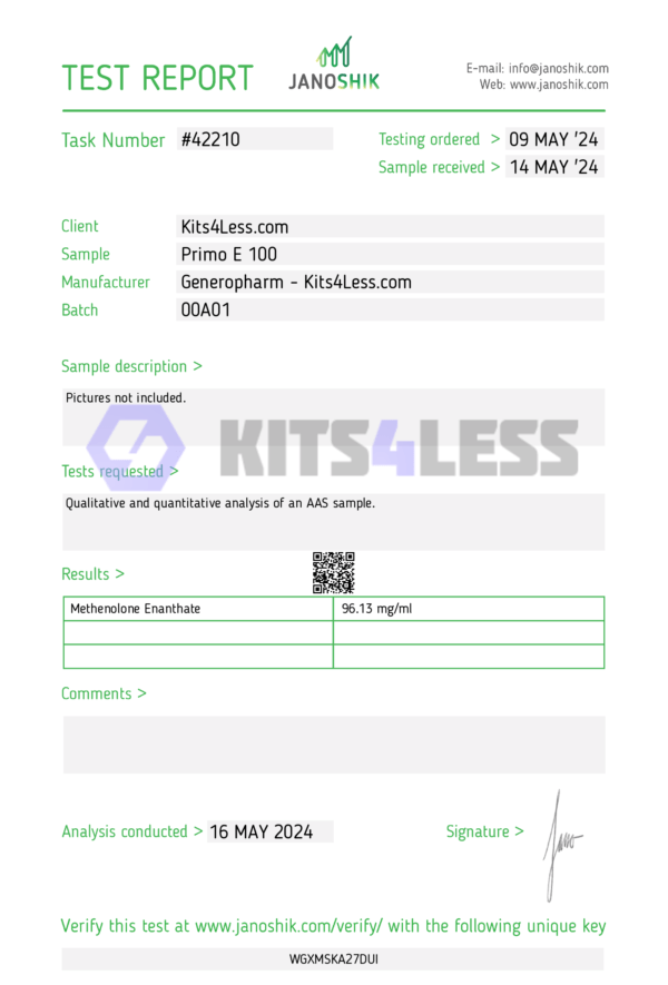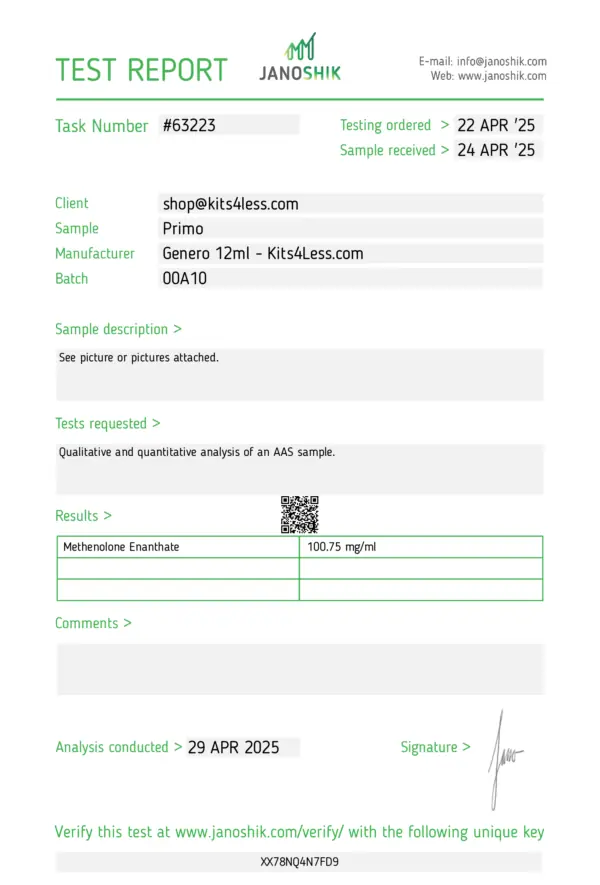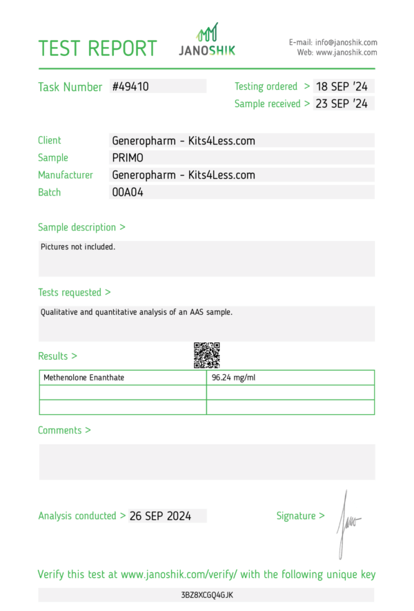 Primobolan Enanthate (Methenolone Enanthate) is a long-acting injectable anabolic steroid derived from dihydrotestosterone (DHT). Known for its extremely low androgenic activity and lack of estrogenic effects, Primo is favored for its clean, lean muscle gains, excellent tolerability, and favorable cosmetic outcomes, especially during cutting or recomp cycles.